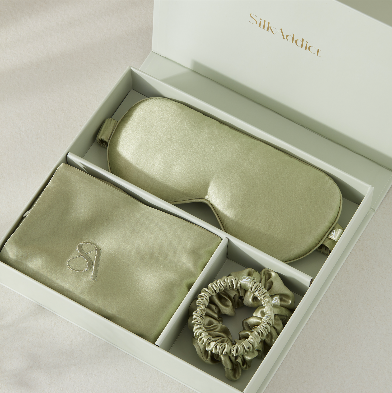 100% Mulberry Silk Gift Set- Olive Green