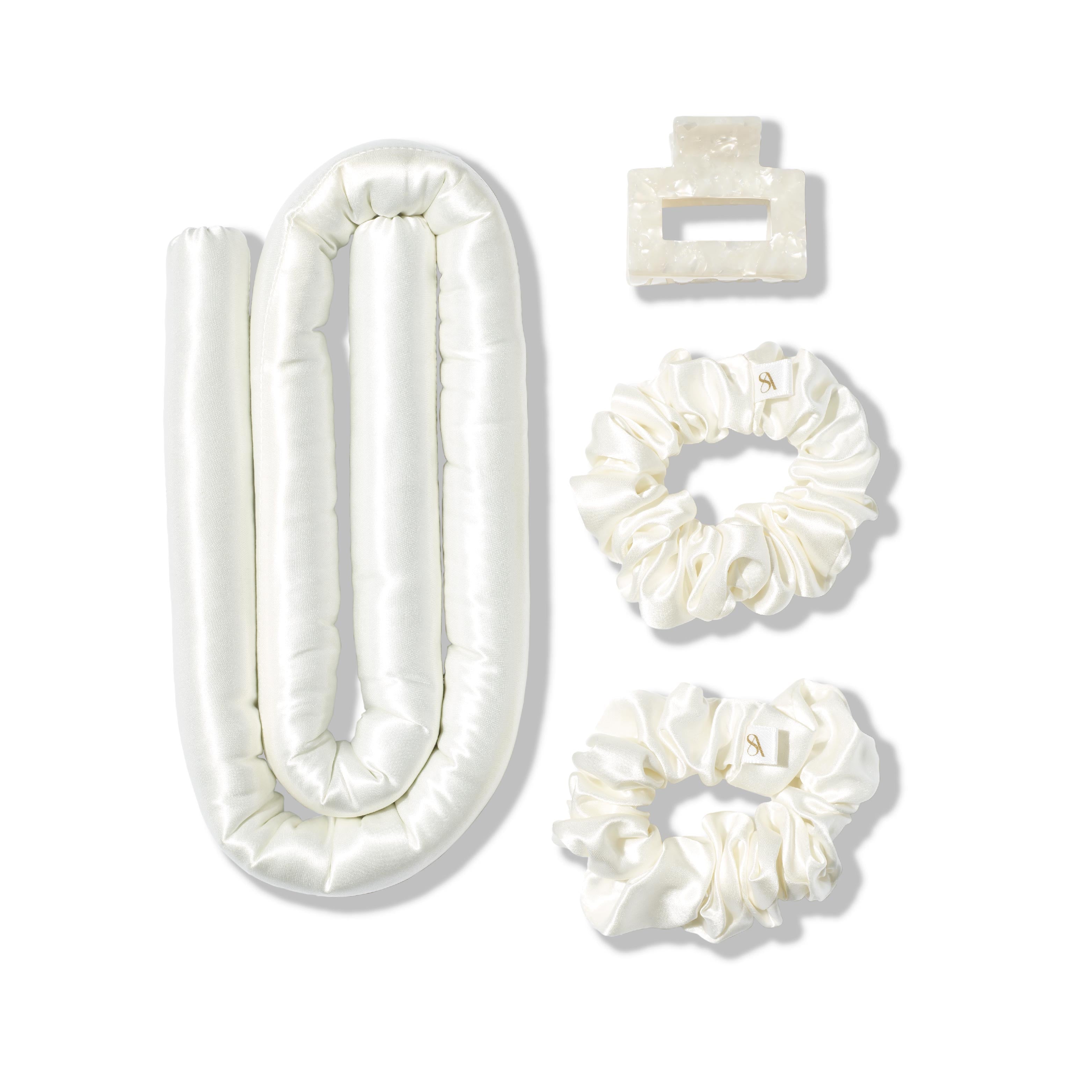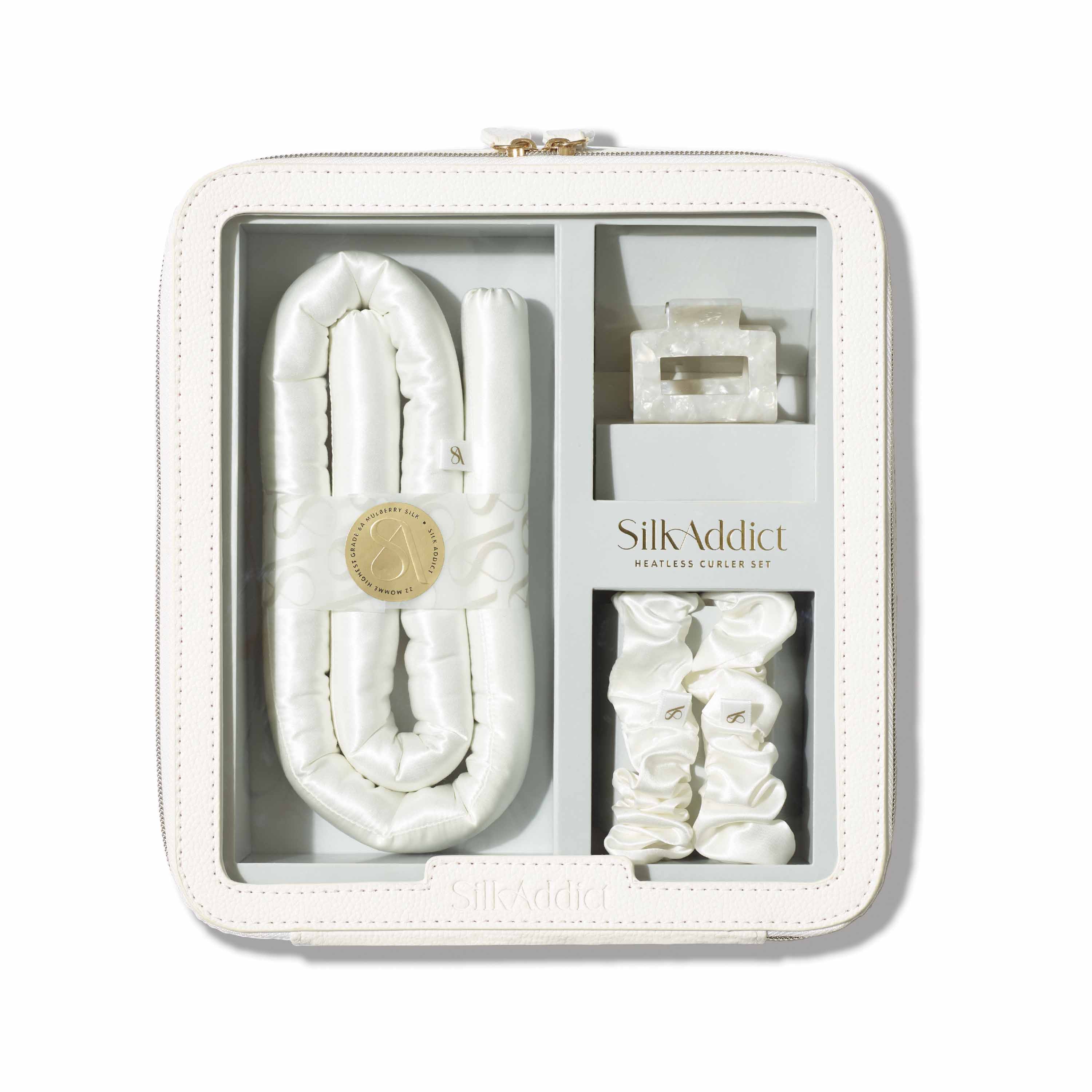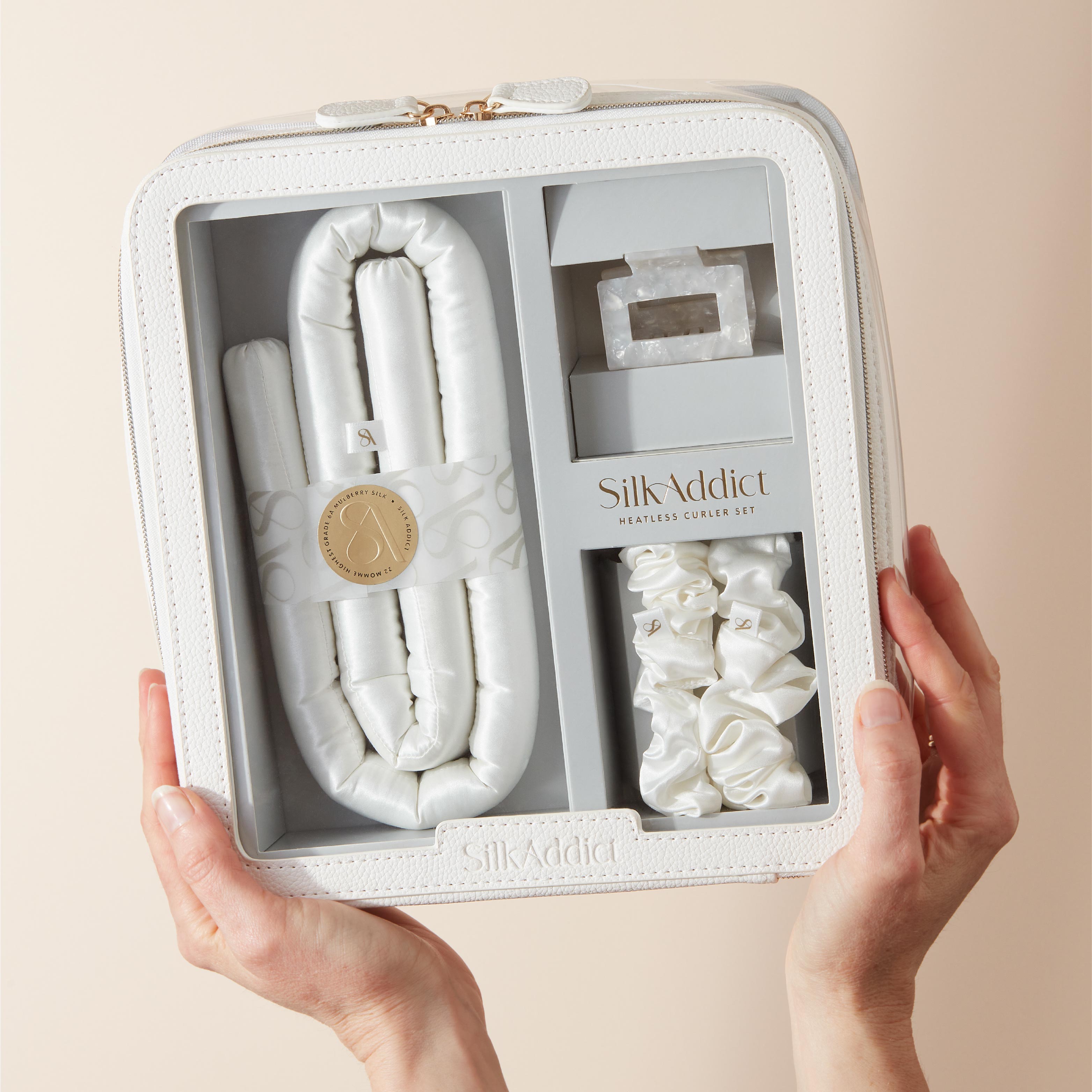 • Set includes: 1x silk curling rod, 1x clip, 2x silk scrunchies, 1x luxe travel bag.