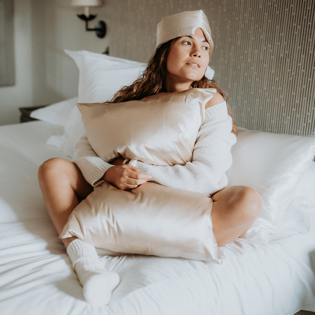 Voted Best Silk Sleep Mask of 2025 by the Good Housekeeping Institute with an impressive 90/100 score, our luxe sleep mask is crafted from the finest grade 6A, 22 momme mulberry silk for ultimate relaxation. Designed for both comfort and beauty, this ultra-soft, hypoallergenic mask blocks out light to enhance sleep quality while keeping skin hydrated by locking in your beauty products. The natural thermoregulating properties of silk help maintain a cool, calm complexion and reduce puffiness, while its friction-free surface gently protects delicate lashes. It’s the perfect companion for rejuvenating beauty sleep, any time of day or night.